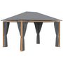 Pavillon de jardin style contemporain - barnum avec rideaux - dim. 3,97L x 2,97l x 2,8H m - alu. aspect bois polyester gris
