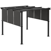 - Pergola d'extérieur avec 3 toiles de toit coulissante en polyester haute densité (revêtement antiUV) avec pans latéraux, pratique pour se protéger du soleil à toute heure de la journée