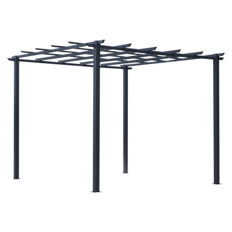 Pergola autoportante style contemporain - toit terrasse à décorer - dim. 3L x 3l x 2,3H m - métal époxy anticorrosion noir