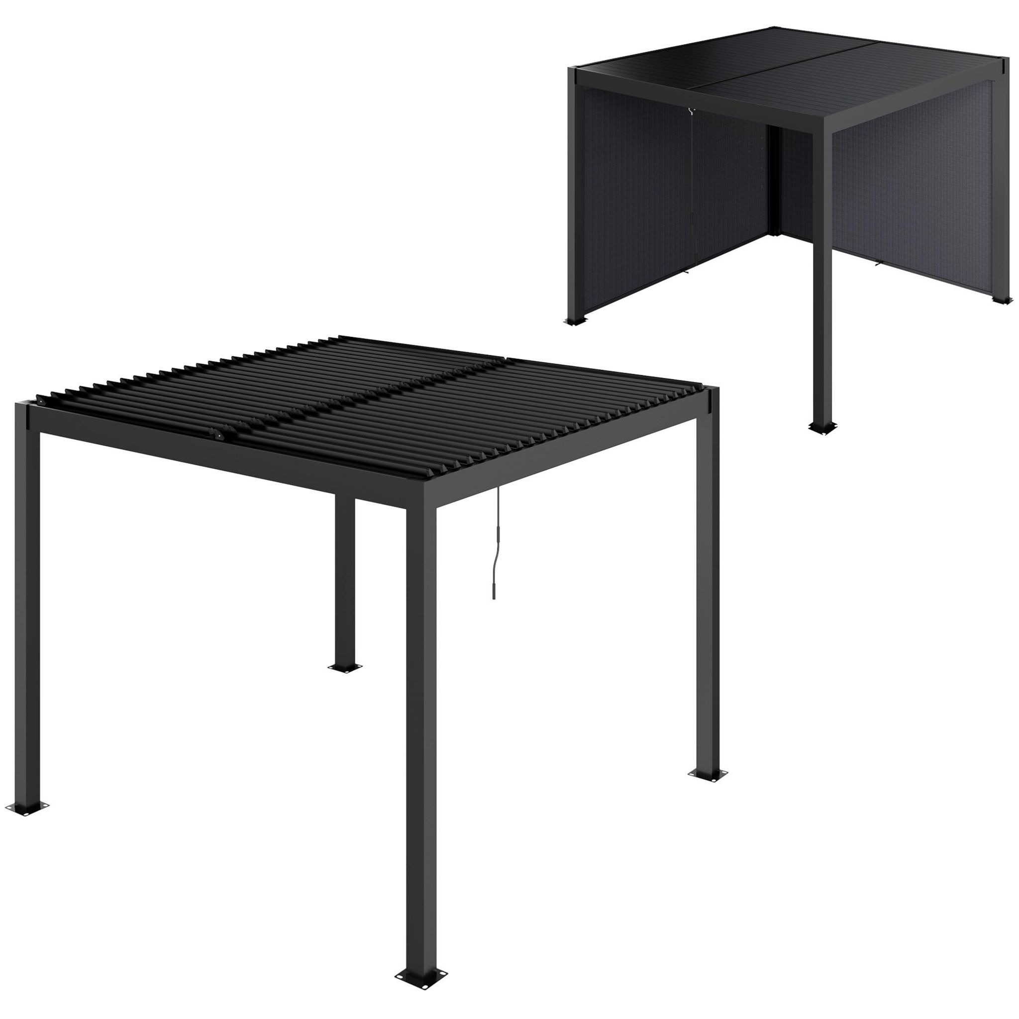 Pergola bioclimatique en alu 3 x 3 m - lames orientables 2 parties indépendantes, 2 stores latéraux - anthracite