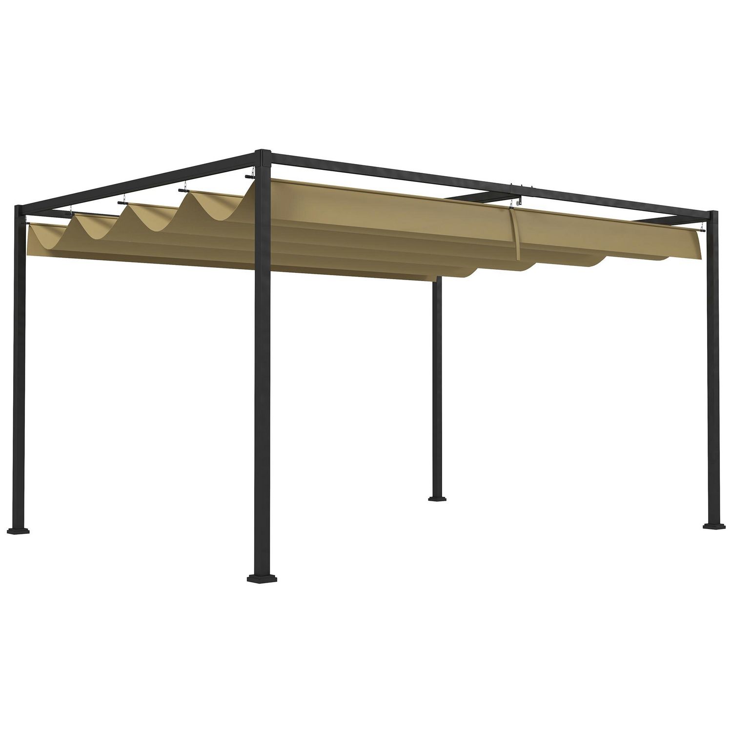Pergola rétractable 2,98L x 2,13l x 2,22H m structure métal époxy anticorrosion toile polyester haute densité 180 g/m² incluse kaki