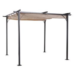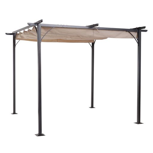 Pergola rétractable 3L x 3l x 2,30H m structure métal époxy anticorrosion noire + toile polyester haute densité 180 g/m² incluse beige