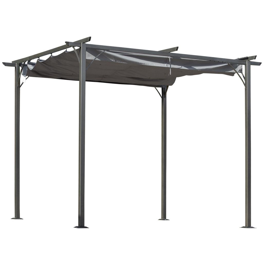 Pergola rétractable 3L x 3l x 2,30H m structure métal époxy anticorrosion noire + toile polyester haute densité 180 g/m² incluse gris