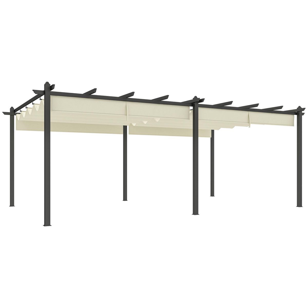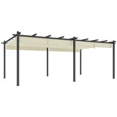 Pergola rétractable dim. 5,97L x 3,58l x 2,23H m structure robuste alu toile polyester haute densité 180 g/m² incluse beige clair