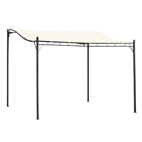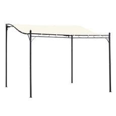 Pergola tonnelle de jardin auvent 2,97 x 2,97 m adossable métal noir polyester anti-UV beige
