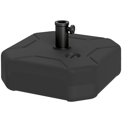 Assurez-vous que votre parasol reste fermement en place avec cette base de parasol remplissable Outsunny. Fabriquée en plastique HDPE robuste et anti-âge, elle doit être remplie de sable ou d'eau pour augmenter son poids total et maintenir la stabilité en extérieur. Facile à installer grâce au design à mât vissé. Associez cette base de parasol lestée à un parasol de terrasse et créez votre oasis à l'ombre.