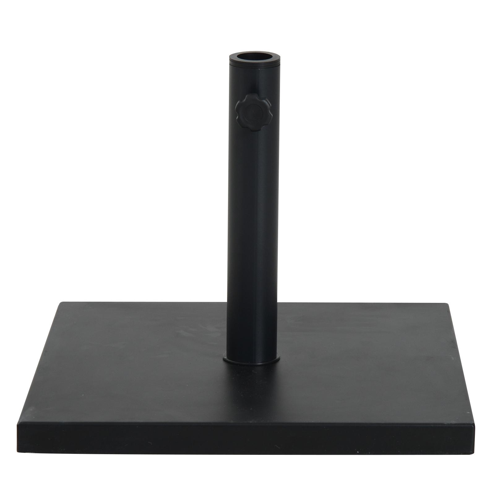 Ce joli pied base de lestage de parasol maximisera la stabilité et sécurité de votre parasol. Par condition ventée, vous pourrez ainsi tout de même profiter de votre parasol. Caractéristiques : - Pied carré base de lestage de parasol style épuré contemporain coloris noir très élégant- Convient aux