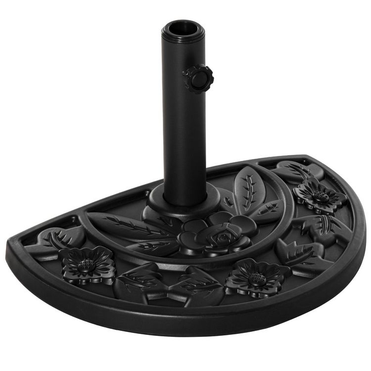 Pied de parasol base de lestage parasol demi-cercle dim. 50L x 32l x 32H cm HDPE motif fleurs feuilles noir