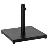 Support de parasol Outsunny, design carré noir mat, robuste avec construction en métal et revêtement en poudre. Adaptable aux mâts de 35 mm, 38 mm et 48 mm, sécurisation par bouton de serrage. Parfait pour intégrer durablement à l'ameublement de jardin.