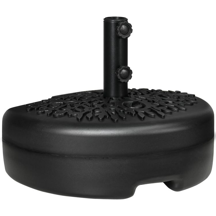 Pied de parasol demi-round à remplir avec 18 kg d'eau / 21 kg de sable - pour mât de Ø 38-48 mm - 50 x 31 x 38cm - noir