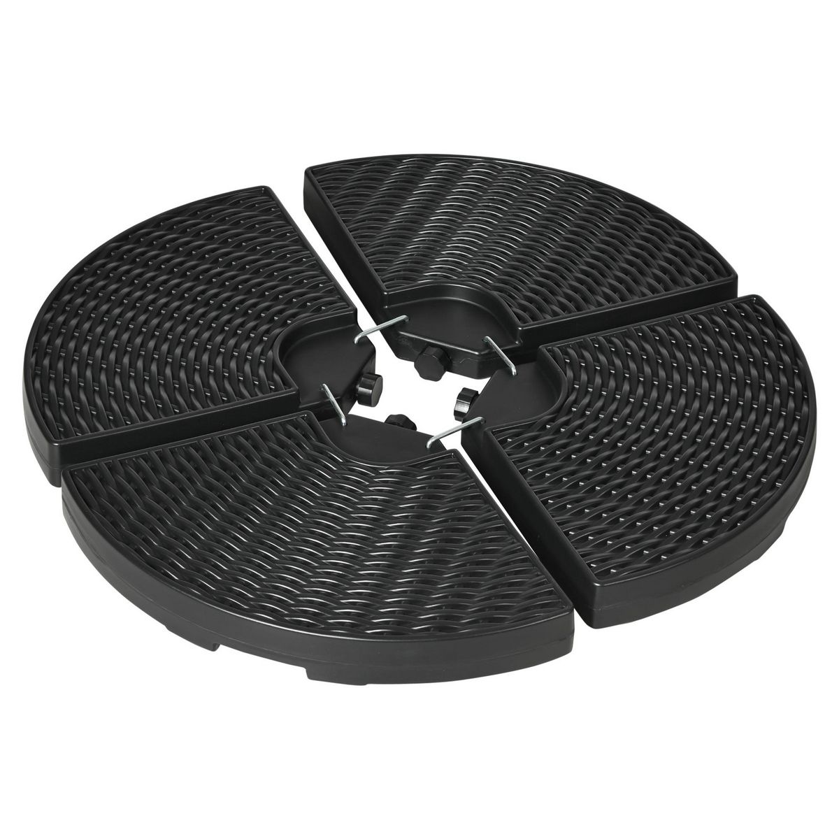 - Lot de 4 poids de lestage pour parasol en résine HDPE imitation rotin tressé coloris noir très élégant