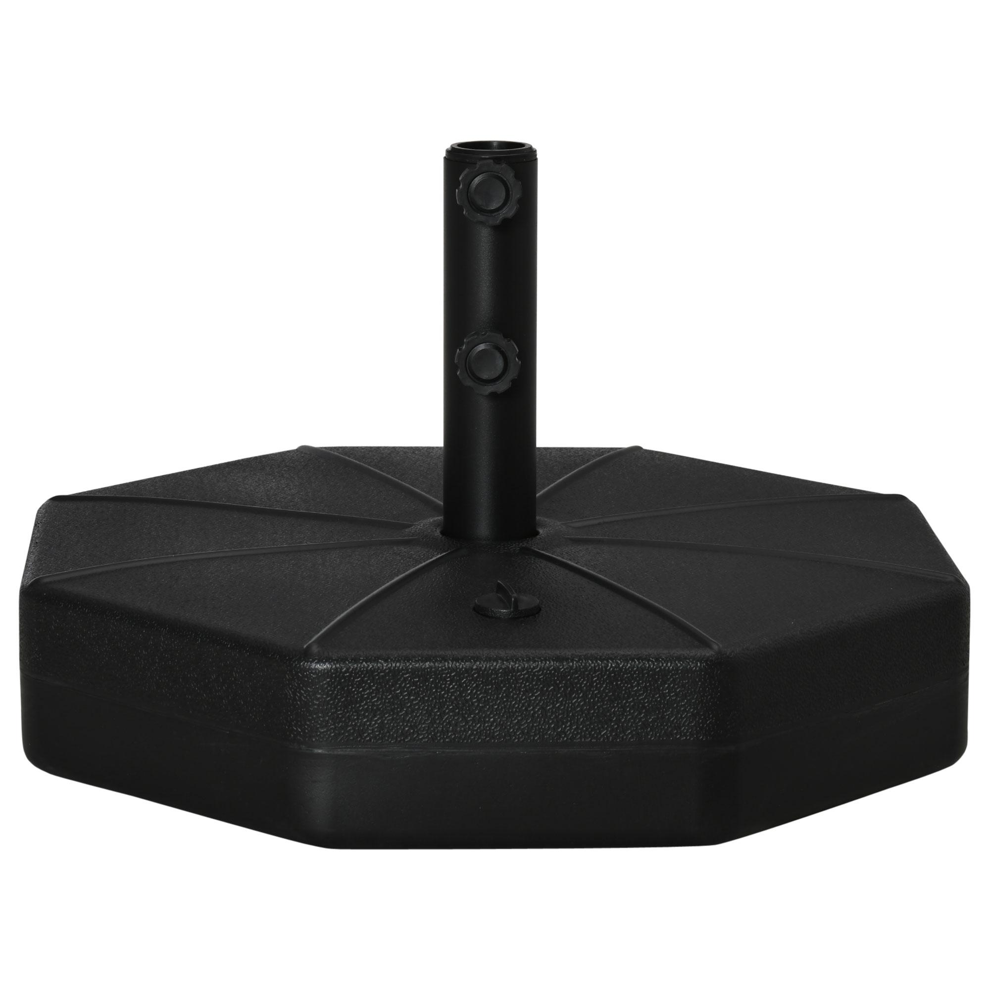 Stabilisez votre parasol avec cette base de parasol Outsunny en HDPE durable. Pèse 28kg ou 40kg remplie d'eau/sable combinés, nettoyage facile. Ouverture latérale pratique. Parfait avec un parasol de marché Outsunny.Caractéristiques :- Maintient des mâts de parasol de taille ?38 mm et 48 mm, avec de