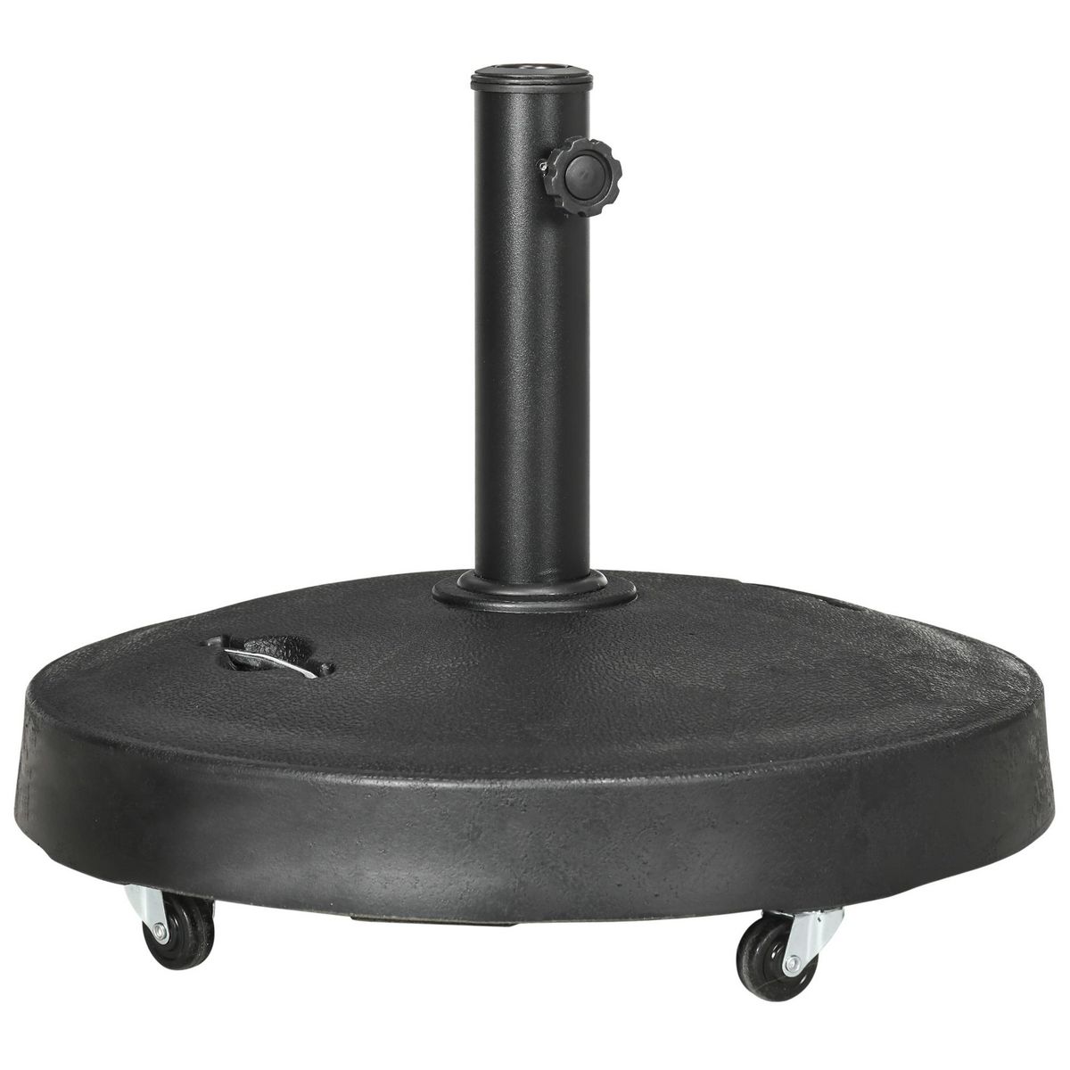 Pied de parasol rond - base de lestage parasol sur roulettes - poids net 24 Kg - résine surface granuleuse noir