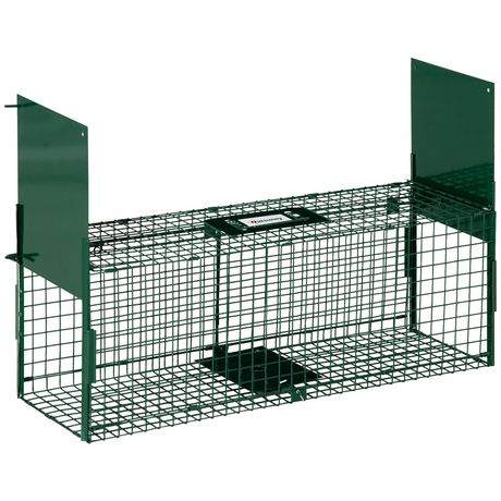 Piège de capture pour petits animaux type lapin rat - 2 entrées + poignée - dim. 80L x 25l x 30H cm - métal vert