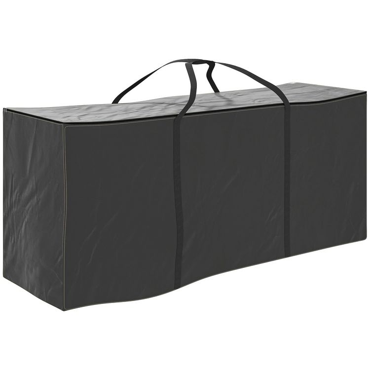 Organisez votre terrasse avec le sac de rangement pour coussin de jardin imperméable Outsunny. Toile Oxford 600D, imperméabilité 2 000 mm, protection UV30+, il garde les coussins à l'abri de l'eau, UV et poussière. Capacité de 720 L, idéal pour intérieur/extérieur. Zip à double sens avec rabats pour