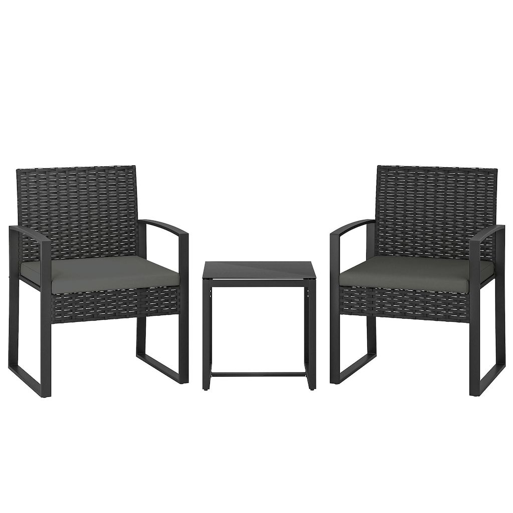 Salon de jardin 2 places 3 pièces avec coussins plateau verre trempé résine tressée 6 fils gris