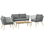 Salon de jardin 4 places 4 pièces design scandinave acier époxy résine filaire PE coussins inclus gris
