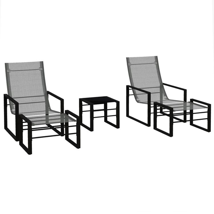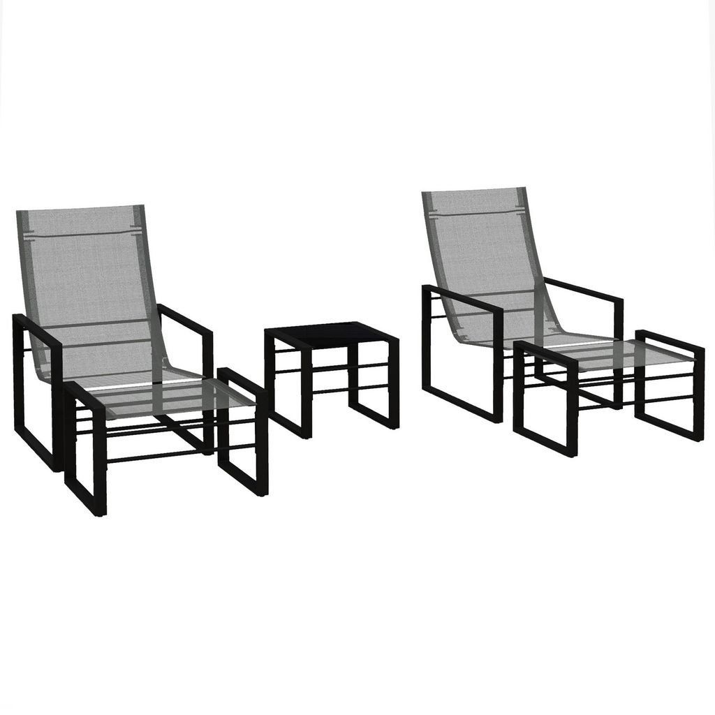 Salon de jardin 5 pièces 2 places métal noir tissu mesh gris