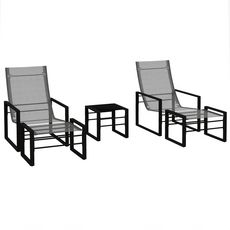 Cet ensemble de jardin avec 2 fauteuils, 2 repose-pieds et 1 table basse est idéal pour créer un bel espace détente dans votre extérieur. Ce lot de 5 pièces pour 2 personnes est parfait pour se détendre en plein air. Le cadre en acier tubulaire est traité pour résister à la rouille et le siège en tissu mesh est confortable et aéré.
