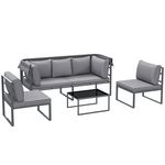 Découvrez le confort avec l'ensemble de salon de jardin modulaire 4 pièces Outsunny : un canapé de jardin extérieur avec auvent se transforme en espace pour cinq. Coussins moelleux, pieds ajustables pour stabilité.