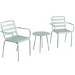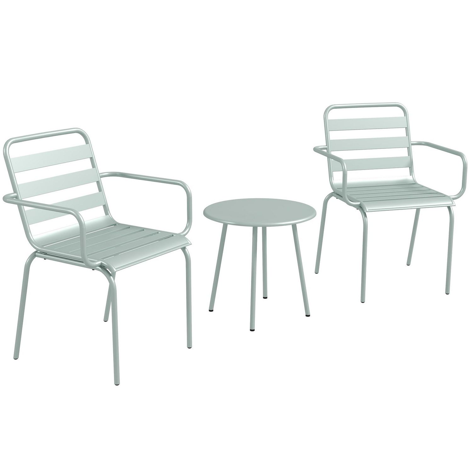 Salon de jardin bistro - table basse ronde Ø 60 cm 2 chaises empilables - acier thermolaqué vert de gris
