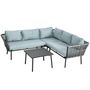 Salon de jardin d'angle 5 places 4 pièces coussins inclus alu. résine tressée gris