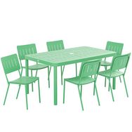 Salon de jardin - ensemble déjeuner 6 places 7 pièces - table et 6 chaises empilables - acier thermolaqué vert