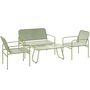Salon de jardin style Acapulco 4 places 4 pièces plateau verre trempé acier résine filaire vert