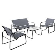 - Salon de jardin extérieur de quatre pièces comprenant deux fauteuils, une banquette et une table basse