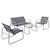 Salon de jardin style yachting 4 personnes 4 pièces plateau verre trempé
