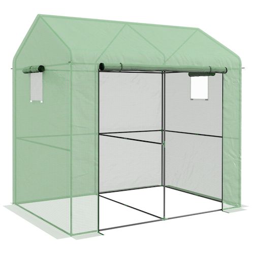 - Mini serre de jardin avec porte zippée enroulable et fenêtres en maille pour faciliter l'accès et la ventilation