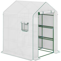 Cette superbe serre de jardin protègera efficacement vos plantes afin d'en tirer le meilleur rendement possible. Equipée de 4 grandes tablettes, d'une porte déroulante zippée avec boucles d'attache, d'une structure en acier thermolaqué, et d'une bâche rallongée en PE haute densité 135 g/m², vous pou