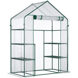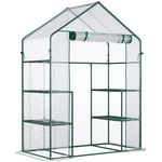 Serre de jardin 6 étagères - dim. 142L x 73l x 195H cm - porte - acier thermolaqué PVC haute densité anti-UV - transparent vert