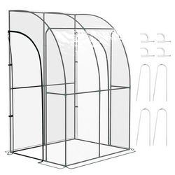 Serre de jardin adossée serre adossée dim. 1,43L x 1,18l x 2,12H m 2 portes zippées enroulables acier PVC transparent