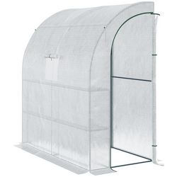 Serre de jardin adossée serre adossée dim. 2L x 1l x 2,13H m 4 étagères 2 portes zippées 1 fenêtre acier PE haute densité blanc