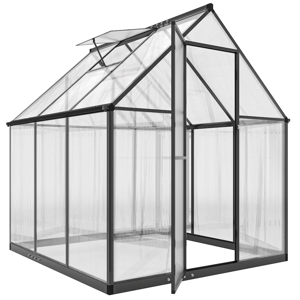 Serre de jardin alu polycarbonate - porte, lucarne - 1,78 x 1,68 x 1,95 m - noir
