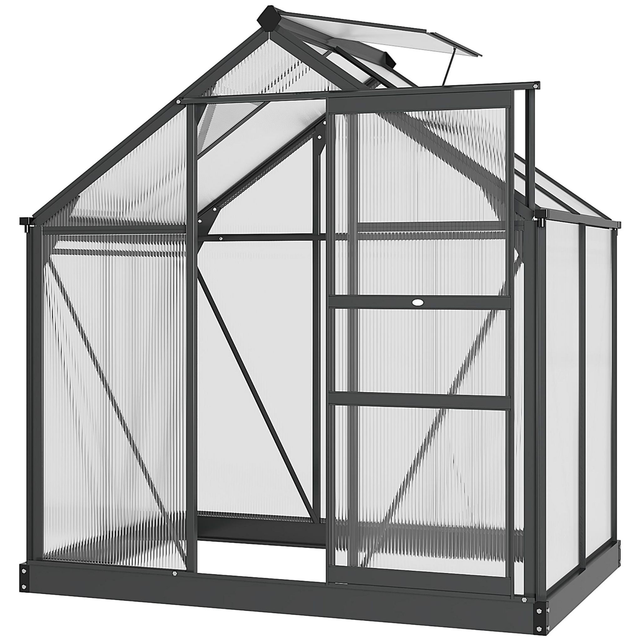 Serre de jardin aluminium polycarbonate 2,51 m² dim. 1,9L x 1,32l x 2,01H m lucarne, porte coulissante + fondation incluse alu. gris polycarbonate transparent