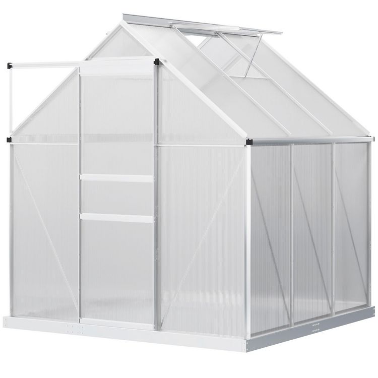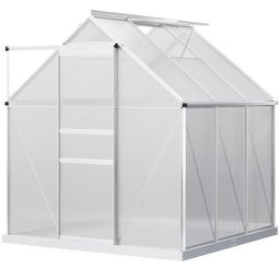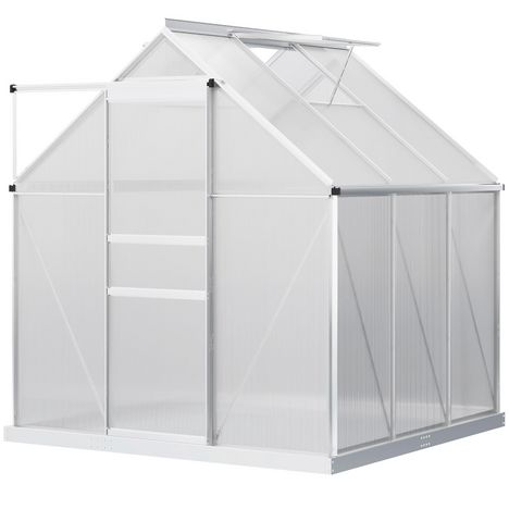 Serre de jardin aluminium polycarbonate 3,61 m² dim. 1,9L x 1,9l x 2H m lucarne réglable fondation porte coulissante