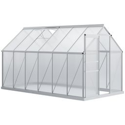 Serre de jardin aluminium polycarbonate 7,12 m² dim. 3,75L x 1,9l x 2H m lucarne réglable fondation porte coulissante
