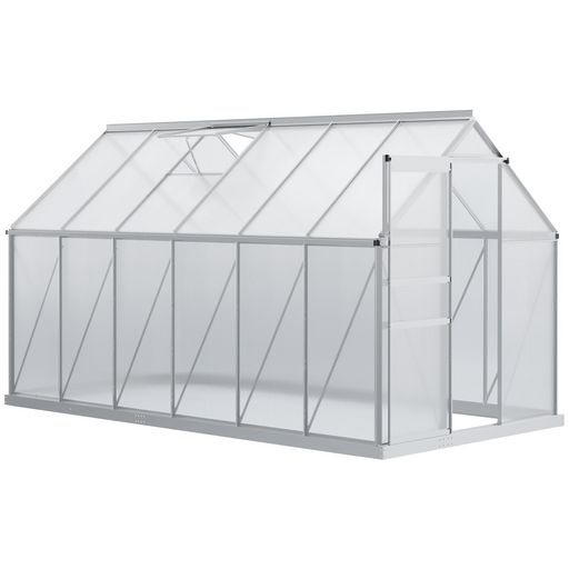 - Serre aluminium polycarbonate grande surface de 7,12 m² au sol pour la culture de vos fleurs, légumes, fruits, etc.