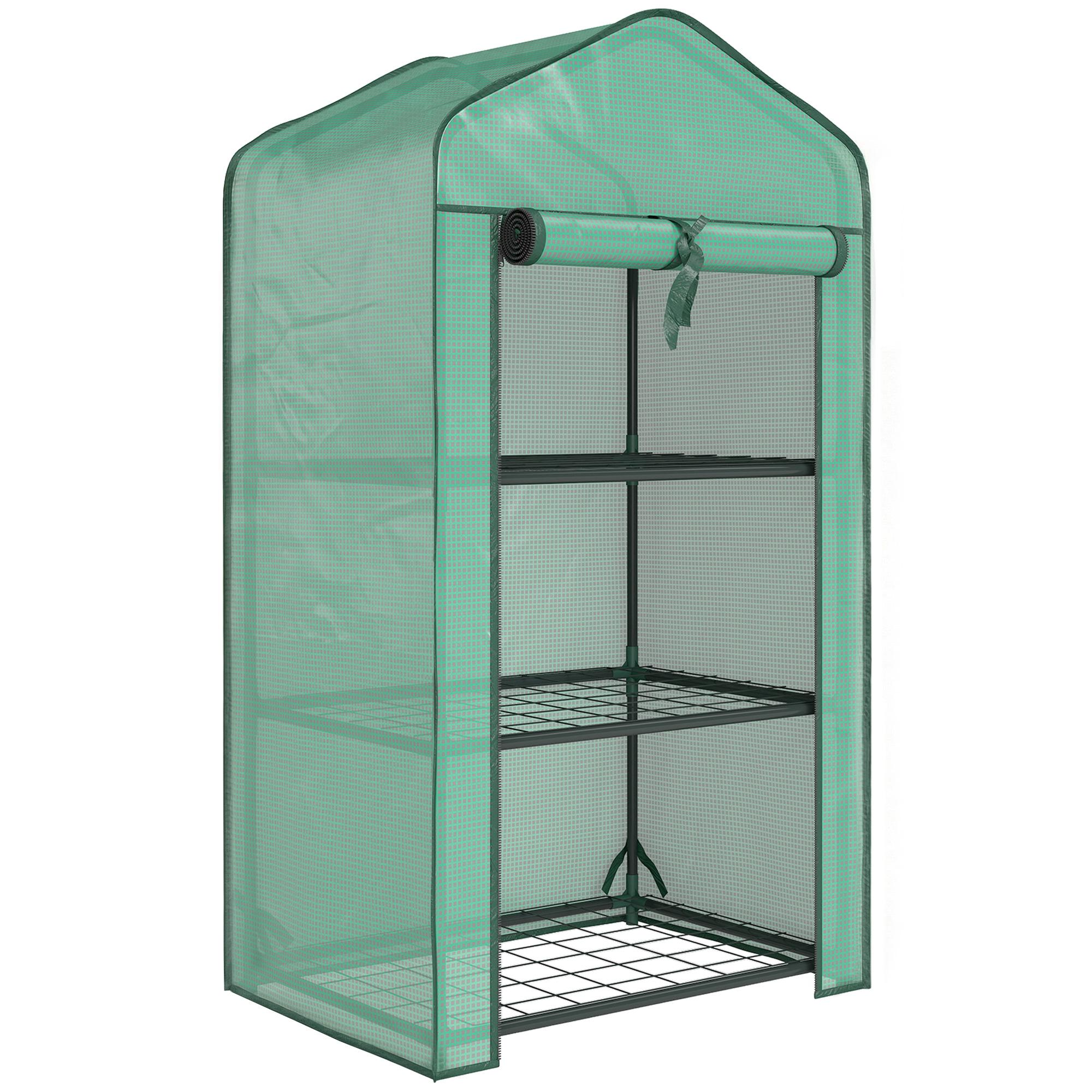 Serre de jardin balcon 3 niveaux métal thermolaqué vert PE vert
