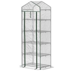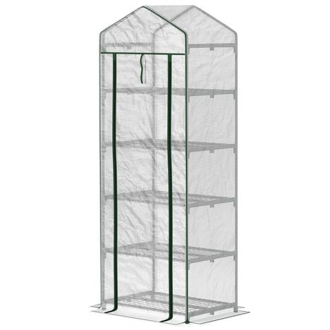 Serre de jardin balcon 5 étagères porte zippée 69 x 49 x 193 cm acier thermolaqué bâche PE blanc