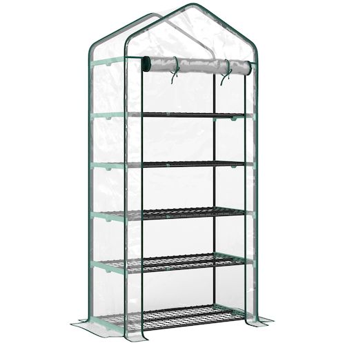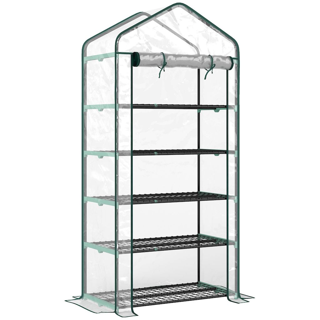 Serre de jardin balcon 5 niveaux porte acier PE transparent
