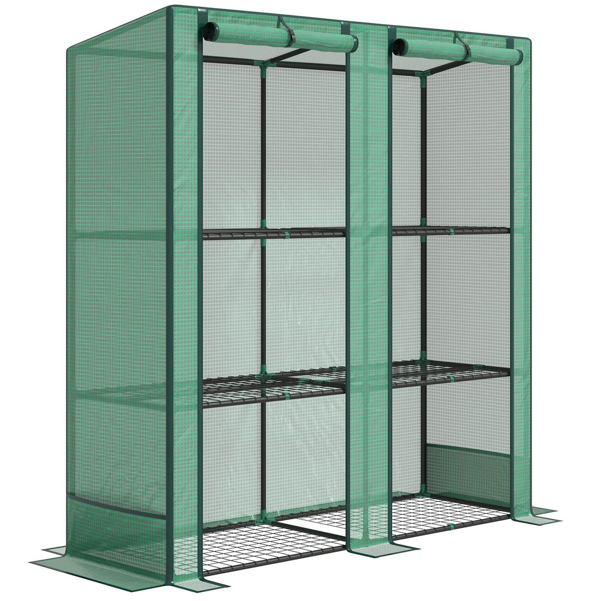Serre de jardin balcon avec étagères métalliques 3 niveaux 2 portes acier noir PE vert