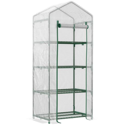 Serre de jardin balcon étagère serre 4 niveaux 0,7L x 0,5l x 1,6H m acier galvanisé bâche amovible PE haute densité blanc