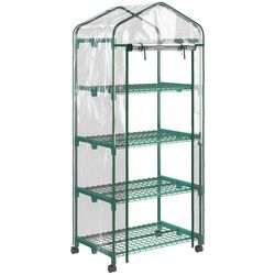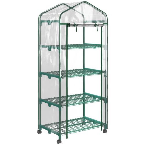Serre de jardin balcon sur roulettes 4 étagères dim. 0,69L x 0,5l x 1,65H m acier thermolaqué bâche PVC porte zippée transparente
