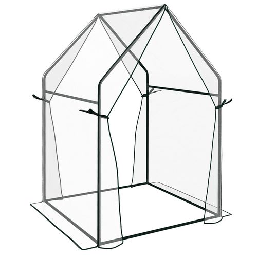Serre de jardin balcon terrasse serre pour tomates 0,9L x 0,9l x 1,45H m double porte acier PVC transparent vert