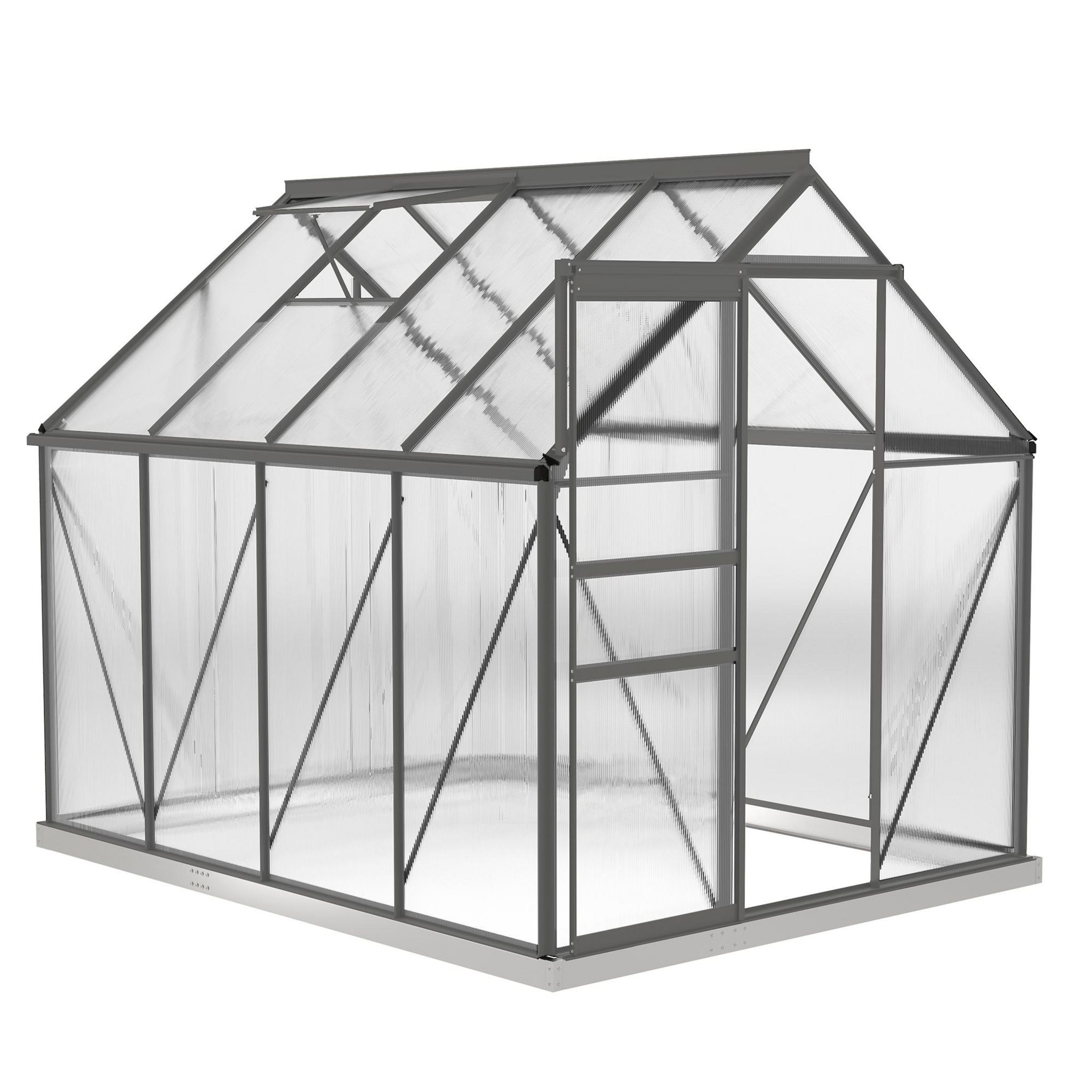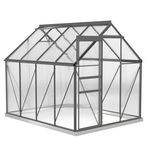 Serre de jardin polycarbonate alu 4,8 m² dim. 2,53L x 1,9l x 1,99H m lucarne réglable fondation porte coulissante gris