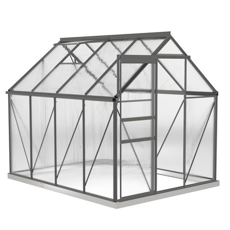 - Châssis robuste et stable en aluminium anodisé avec panneaux double paroi en polycarbonate alvéolé isolant et anti-UV de 4 mm