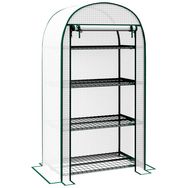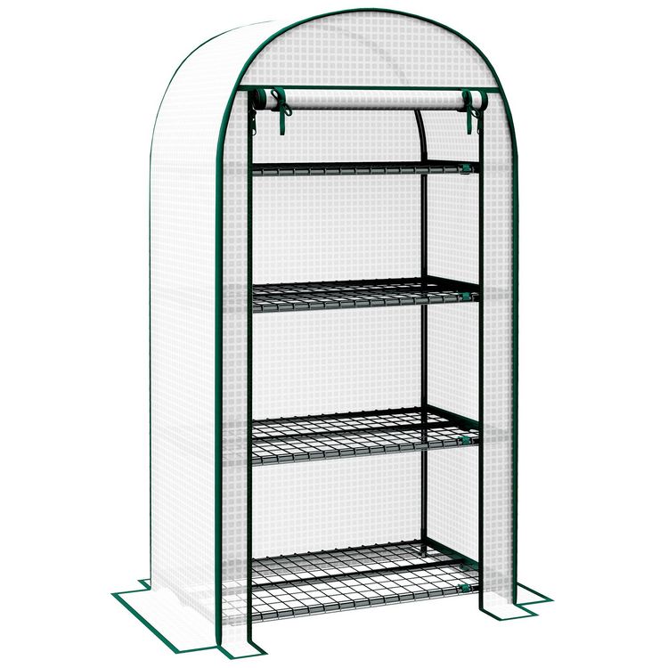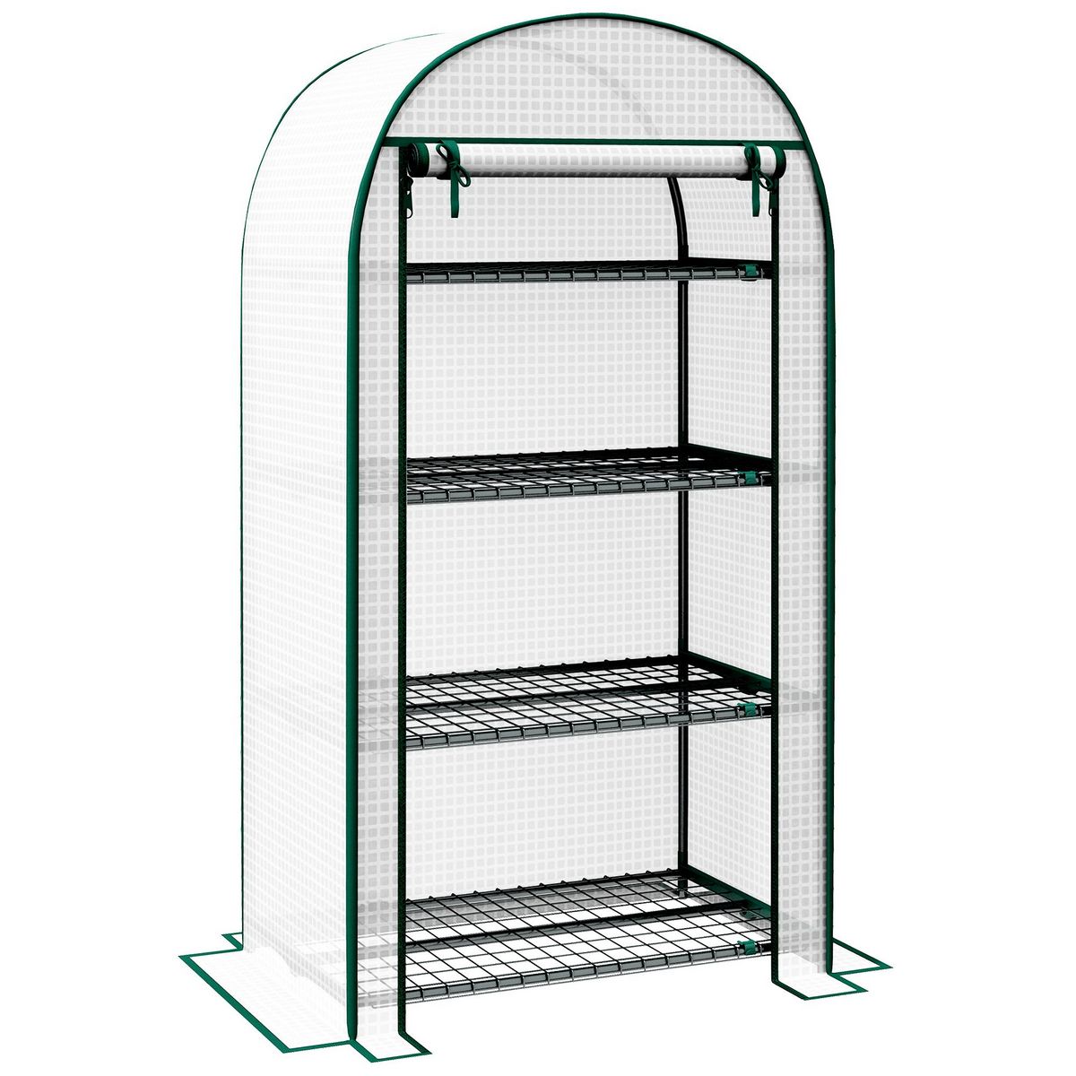 Serre de jardin serre de balcon 4 étagères métal porte zippée enroulable 80 x 49 x 160 cm PE blanc